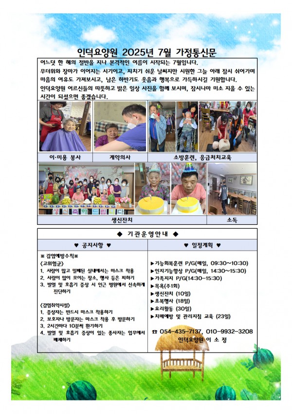 2025년7월 소식지 페이지 정보 작성자 인덕요양원 작성일25-06-30 13:42 조회3,127회 댓글0건 관련링크 이전글 다음글 목록 본문 인덕 소식지입니다 6월중에는 행사와 교육이 많았습니다^^ 이전글 다음글 목록