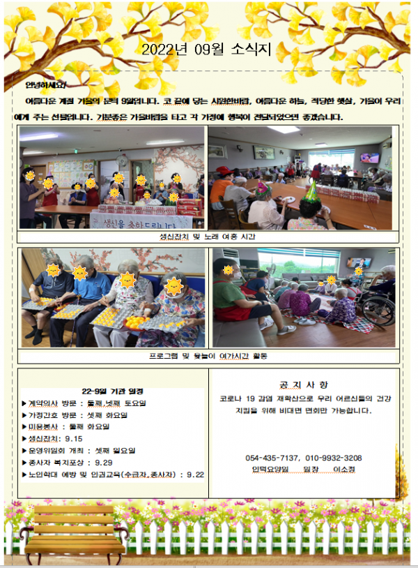 건강과 행복 두가지 다 가지는 우리 입소자 어르신과 보호자님이 되시기를 바래 봅니다.